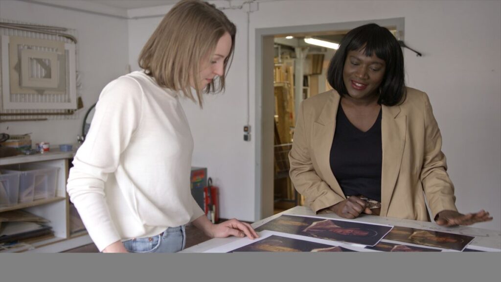 Gleichzeitig geht der Film der postkolonialen Geschichte der Dinge nach – verkörpert durch die BiPOC-Aktivistin Thelma Buabeng, die in die Rolle einer Doktorandin der Postcolonial Studies schlüpft, die im Fundus jobbt. Sie entdeckt einen parallelen Ding-Alltag von afrikanischen Objekten – koloniale Originale, Airport Art, rätselhafte oder rassistische Gegenstände und schließlich das Portrait einer „African Woman Holding a Clock“, das im Verlauf des Films in der Jetztzeit ankommt.